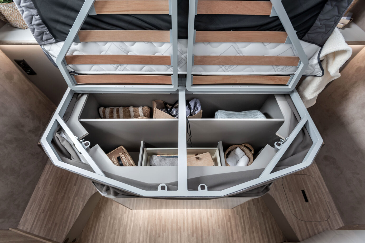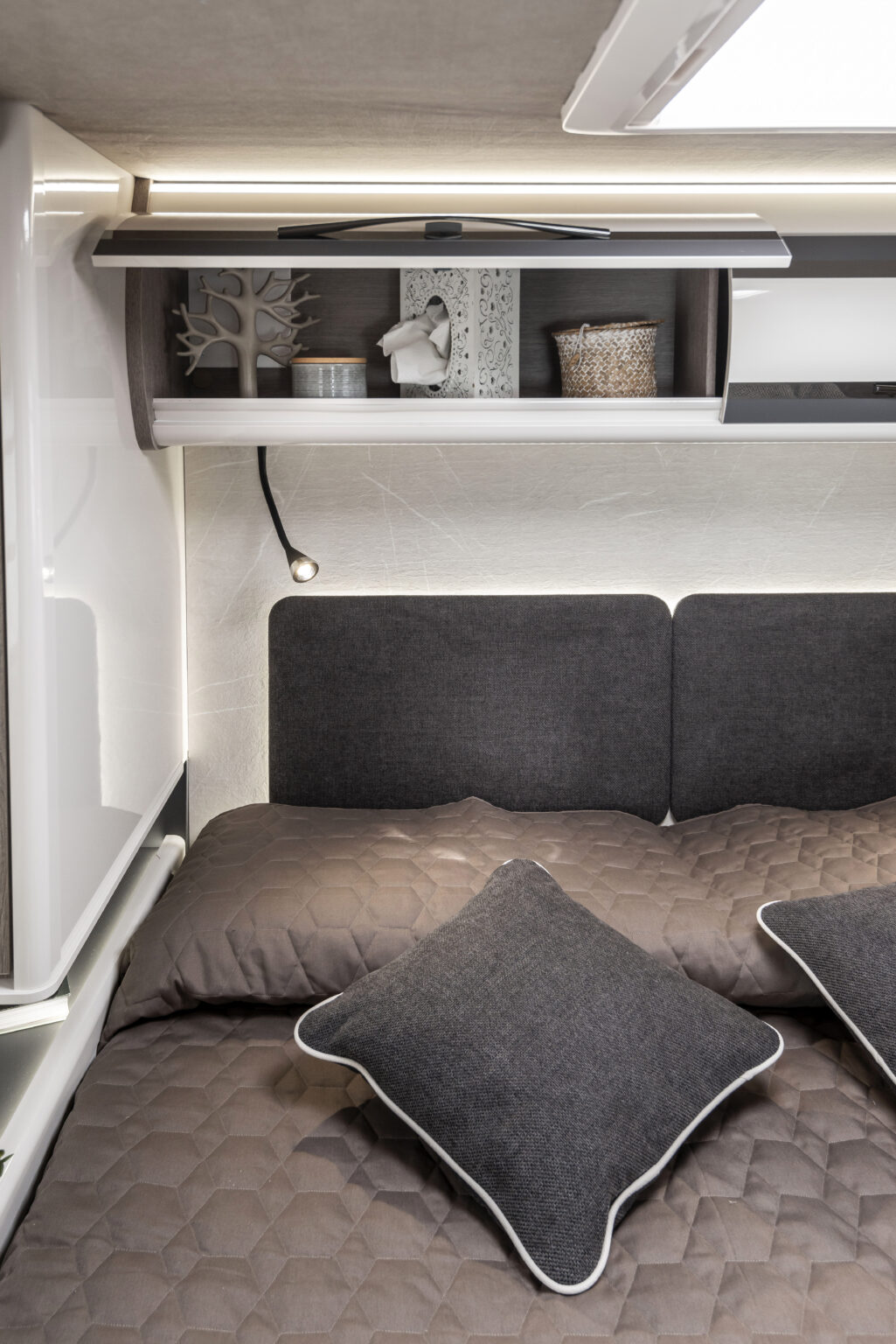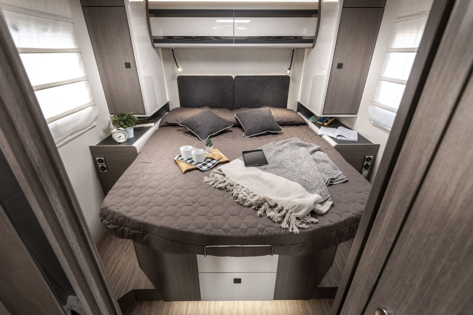 Imaginez-vous vous réveiller entouré de la douce lumière du matin, dans un espace qui semble avoir été conçu sur mesure pour vous. La zone nuit avec lit central n’est pas seulement un détail : c’est le cœur battant de votre camping-car, profilé ou intégral, l’endroit où chaque journée commence avec énergie et se termine dans un confort maximal, un espace conçu pour garantir bien-être, praticité et style, où que vous soyez.